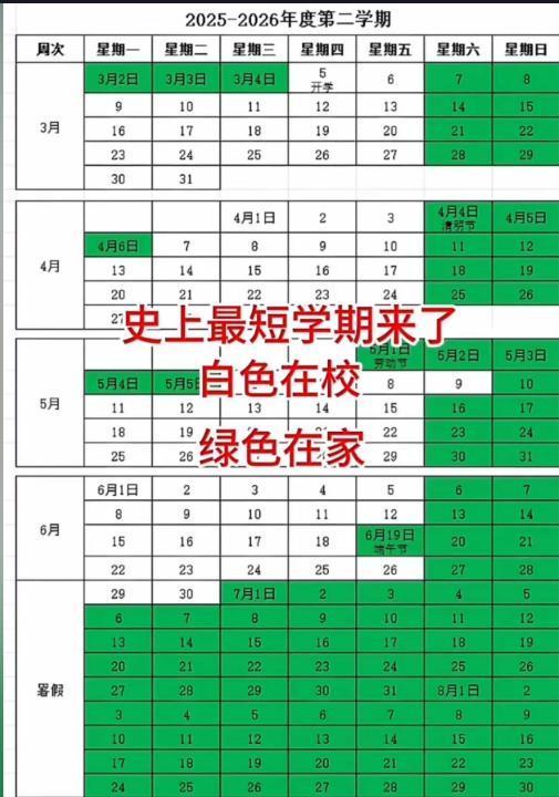 2026年的暑假,确实能满足同学们的需求。今年春季,同学们将迎来超短学期,这个学期表,看着就让人觉得快乐。